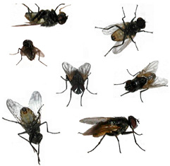 The housefly very broadly dispersed around the globe and, as the name implies, is a cosmopolitan companion of humans and domestic animals. They thrive both indoors and out, and feed on sewage, food remmants, excrement, dead animals and organic waste products, their favorite food though is horse manure.